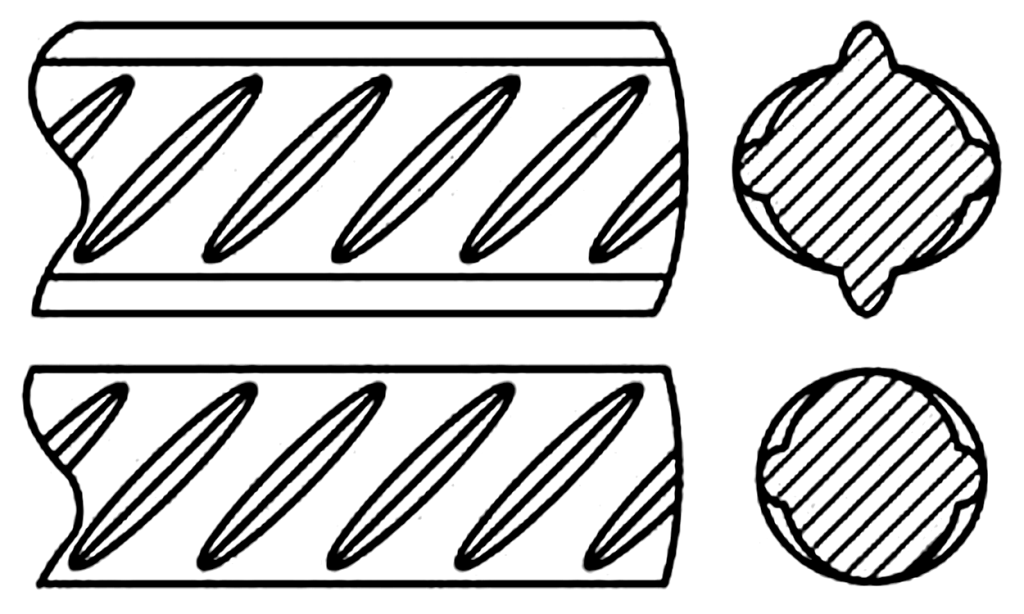 Бетонтой барьцалдах чадварыг нэмэгдүүлдэг хөндлөн товгор хээ хэлбэр (товгор хээ нь өд, хавирган сар эсвэл хагас цагираг хэлбэртэй) бүхий ирмэг, товгоруудтай арматур. Иржгэр гадаргуутай ч гэж хэлдэг. Тэмдэглэгээ: A400, A3, A500, B500.