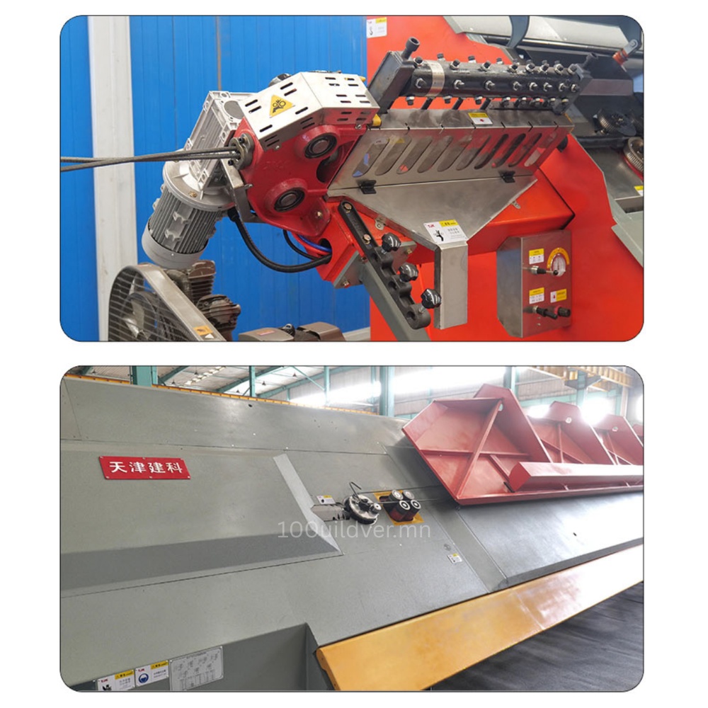 1 1 м өргөн дэгээтэй, 12 м урттай Шөрмөсөн арматурыг боловсруулах хүчин чадалтай. энэ нь стандарт урттай Шөрмөсөн арматурыг тогтвортой тэжээ өгөх, байрлуулж, нугалах боломжтой гэсэн үг.
