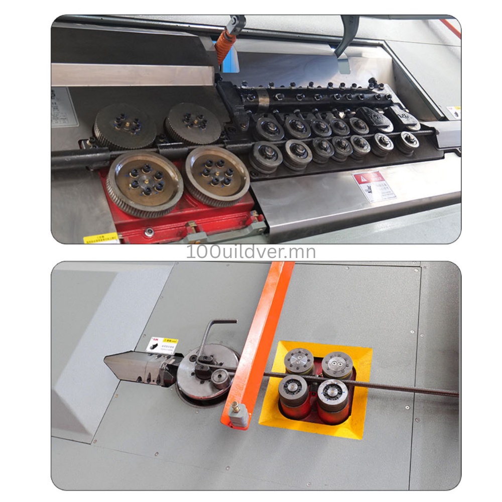 Нэг арматур дээр “нугалах → буцаан тэжээх → дахин нугалах → дахин буцаан тэжээх…” гэх мэт олон нугалааг дараалж хийж дуусгана. Энэ нь олон нугалаатай төвөгтэй хом, Шөрмөсөн арматурын дэгээ хийх зэрэгт их ашигтай. энэ нь үйлдвэрлэлийн явцад хүний гар оролцоог багасгаж, машин тоног төхөөрөмжийн тогтвортой ажиллагааг сайжруулна.